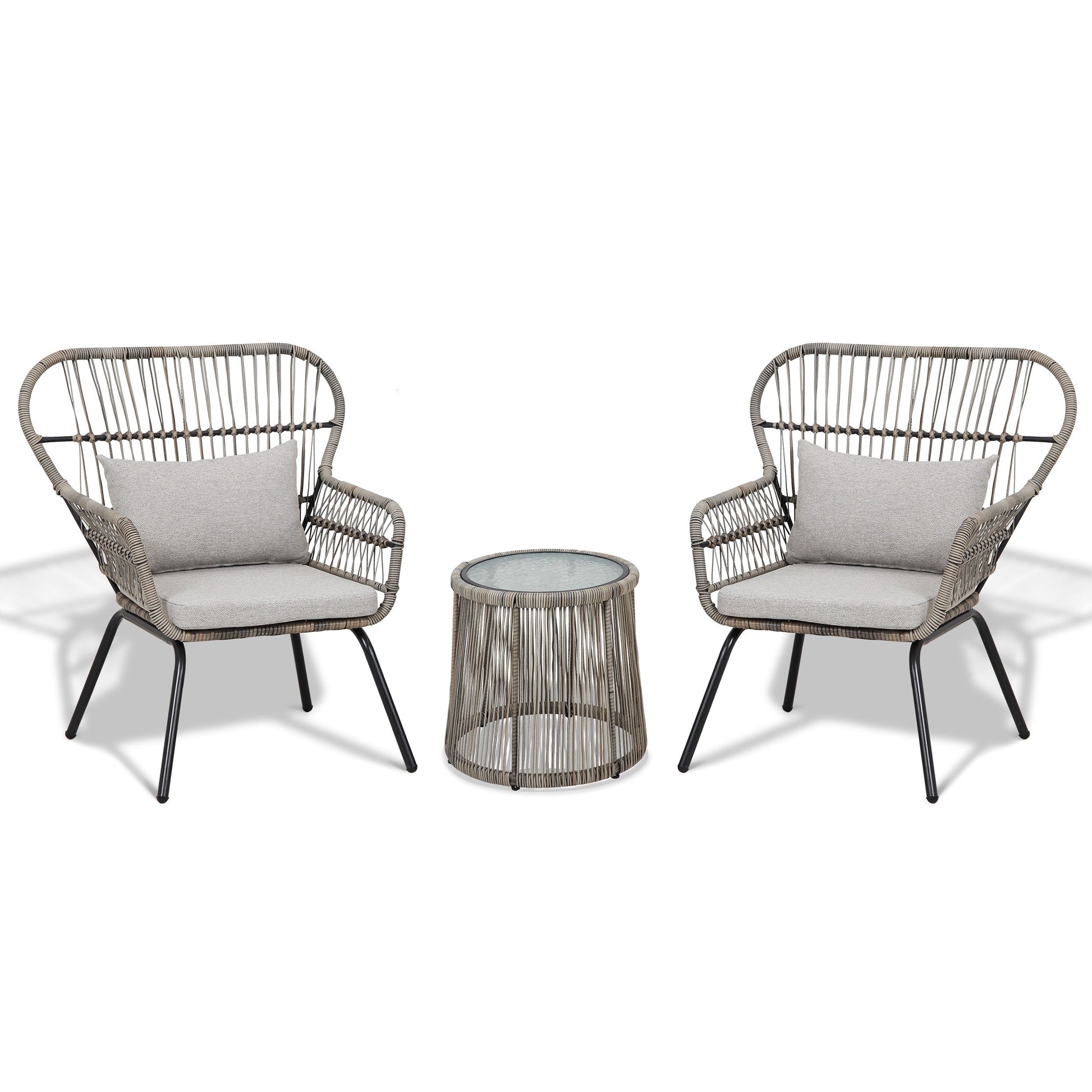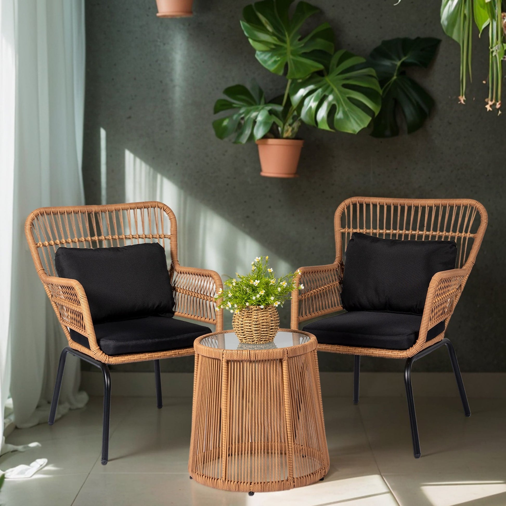 - Ensemble de bistro en osier tressé pour extérieur, 3 pièces, meubles de jardin en rotin résistants aux intempéries, avec table et chaises pour balcon, jardin, véranda, cour arrière.