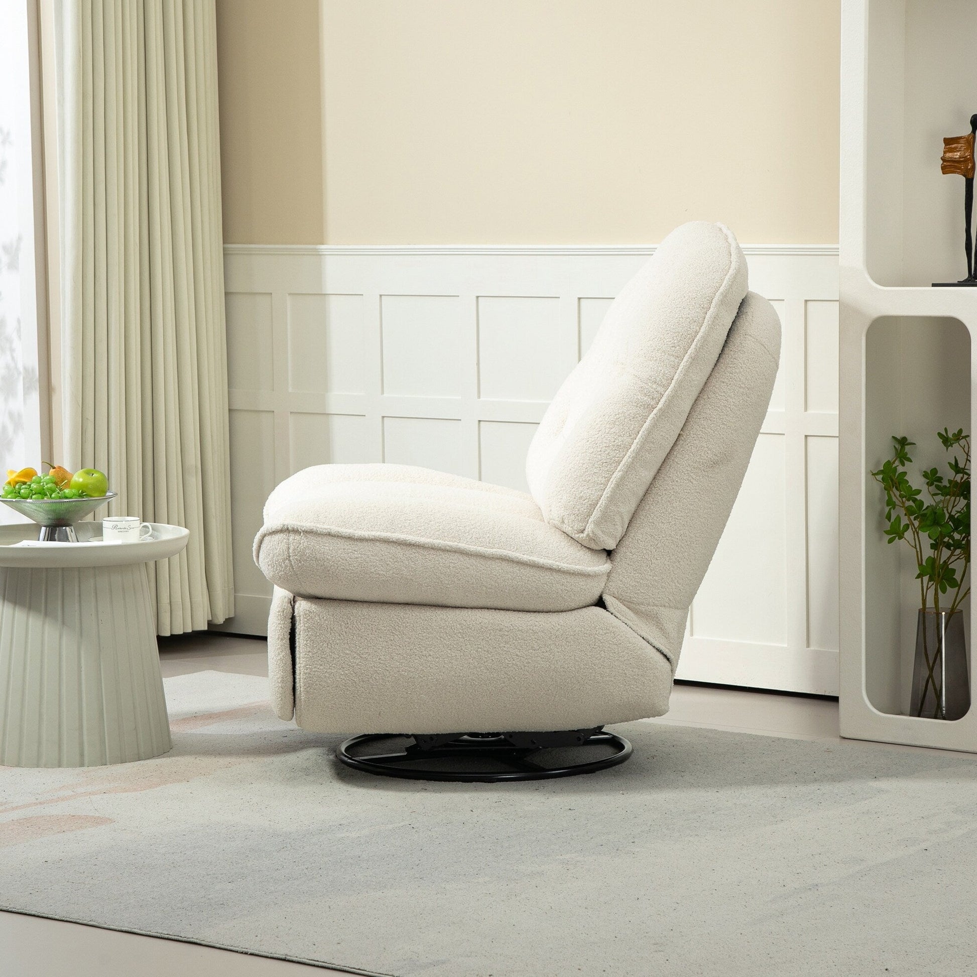 - Structure solide et durable : Ne vous inquiétez pas de la durabilité de votre fauteuil de salon ! Les fauteuils inclinables sont fabriqués avec une base en métal robuste et une structure en contreplaqué. La base en métal robuste assure une rotation fluide et une stabilité qui peut facilement supporter jusqu’à 136 kg (300 lbs).