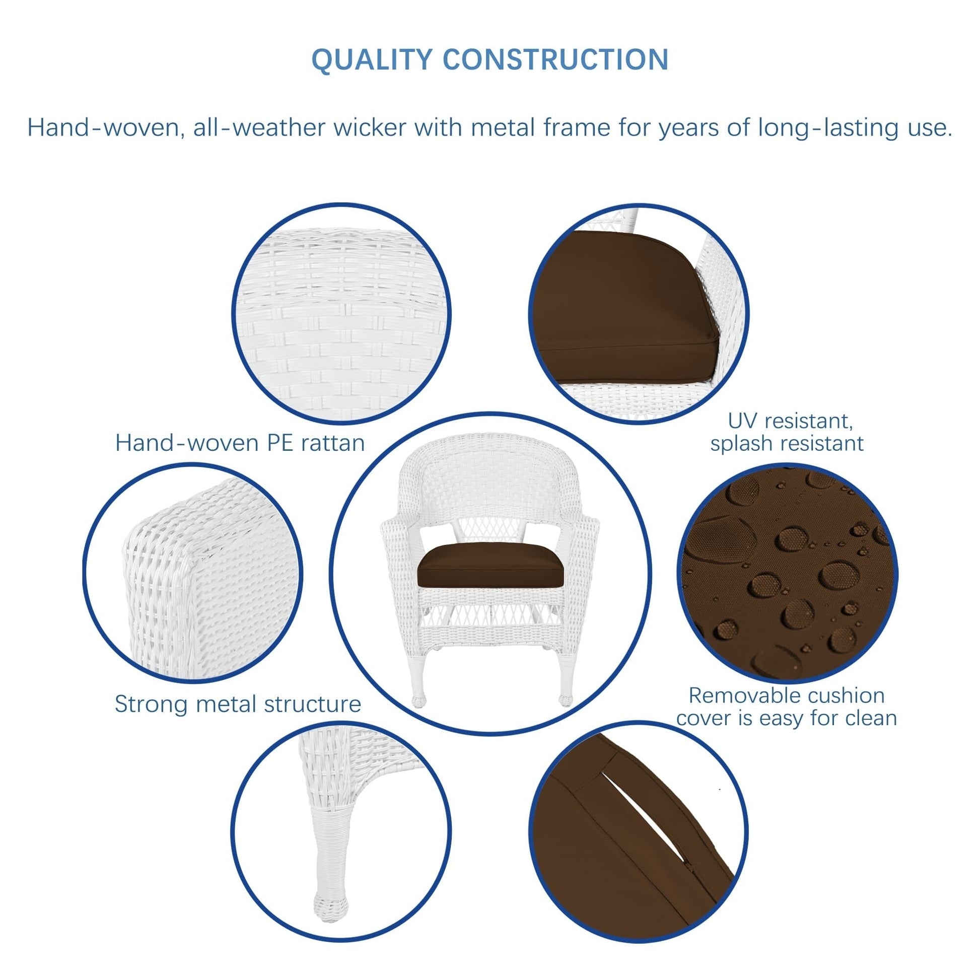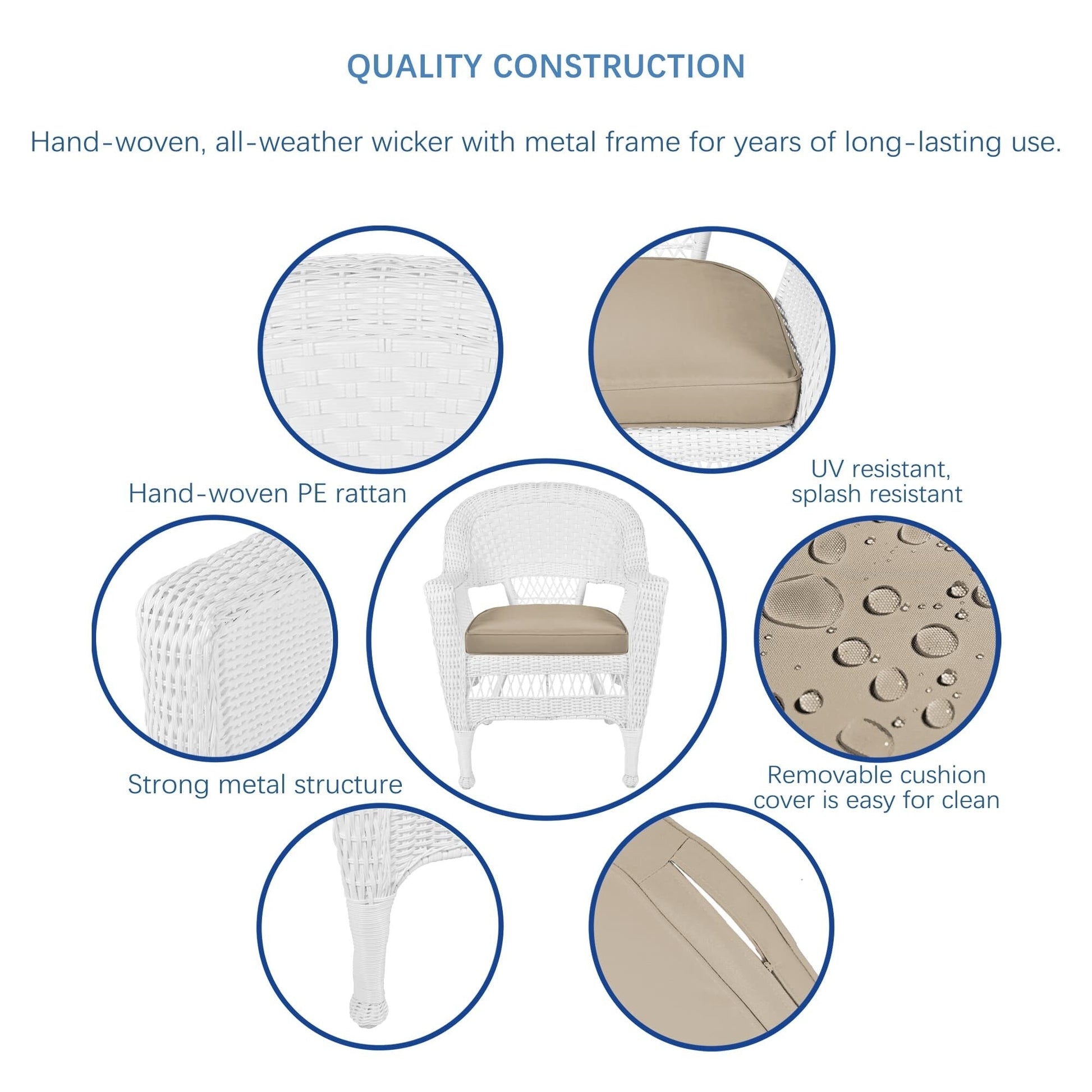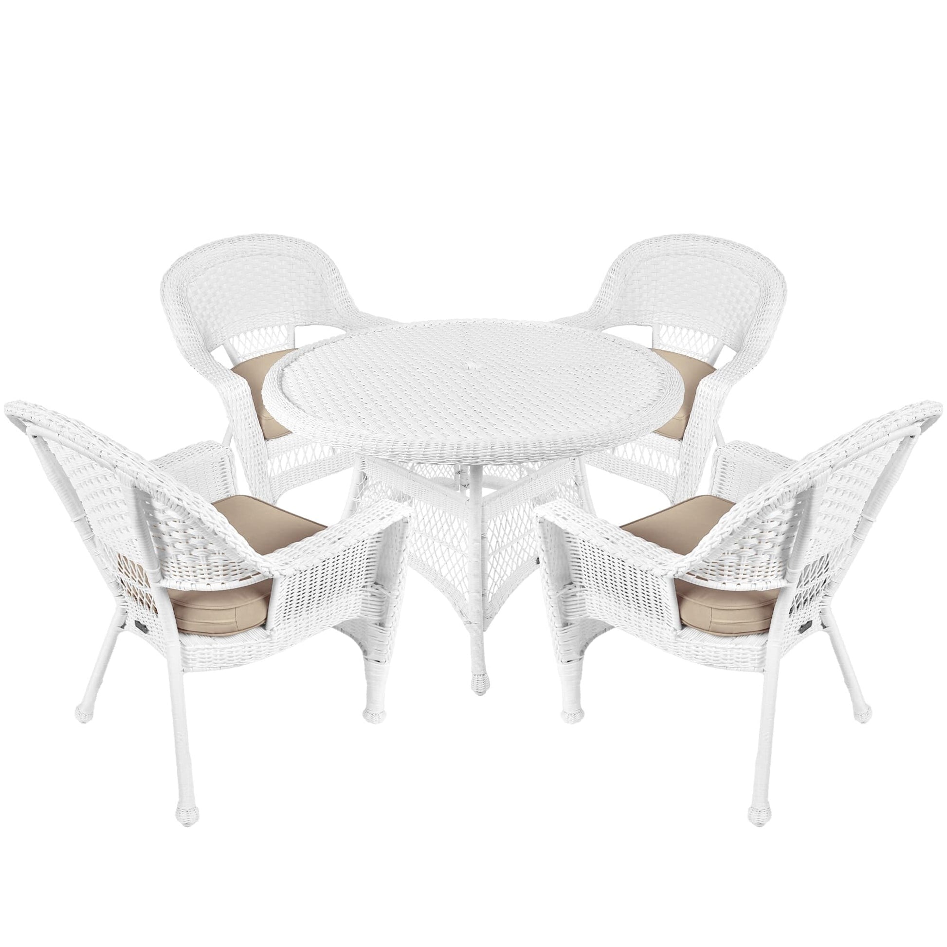 Rendez votre espace extérieur plus confortable avec ce salon de jardin 5 pièces en osier synthétique blanc. Profitez du confort de la vie intérieure avec cet ensemble en osier élégant, comprenant une table ronde en osier et quatre chaises avec des coussins moelleux disponibles en plusieurs couleurs. L'ensemble est conçu pour durer grâce à sa structure en acier et son osier synthétique résistant aux intempéries.