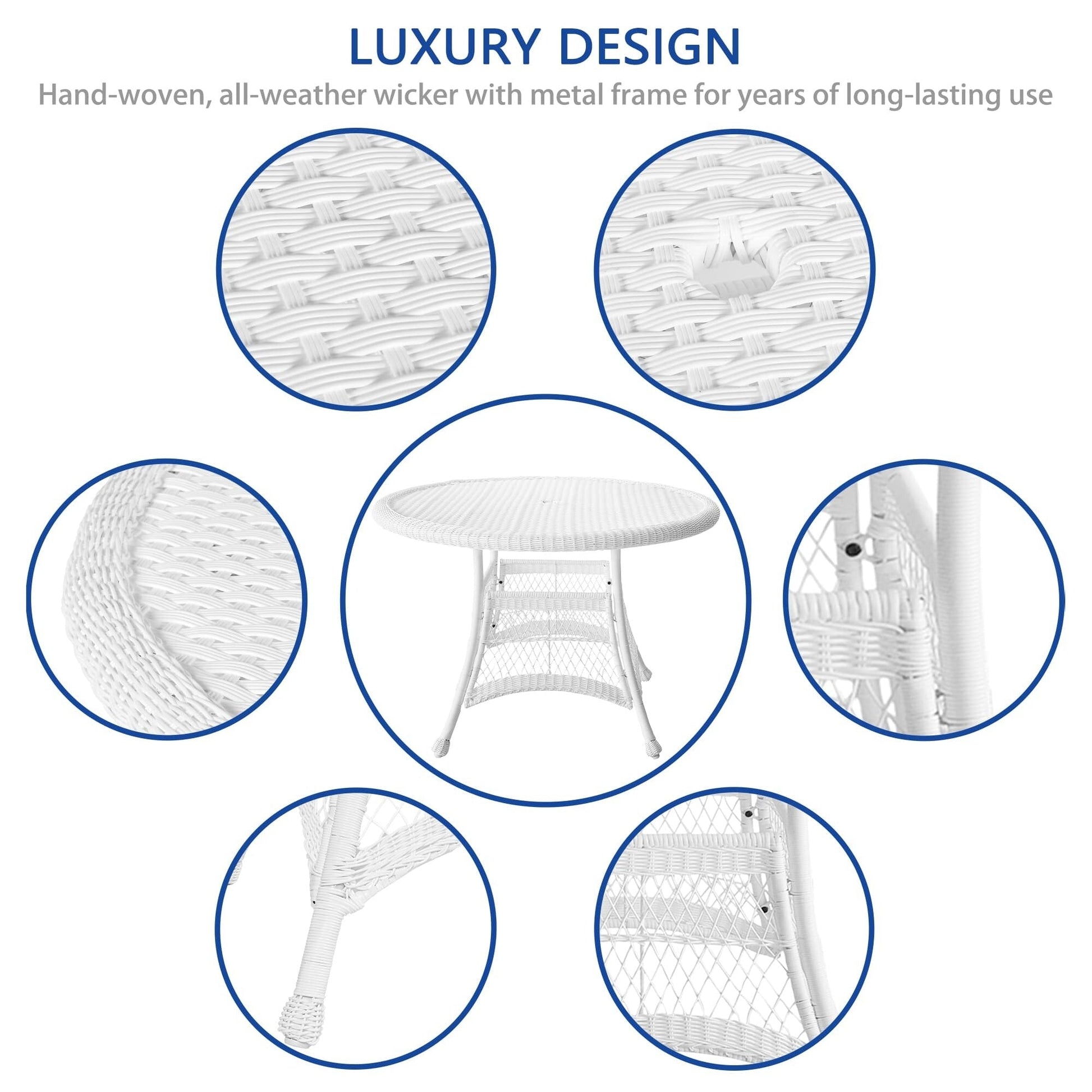 Ensemble de salle à manger en osier synthétique blanc, 5 pièces