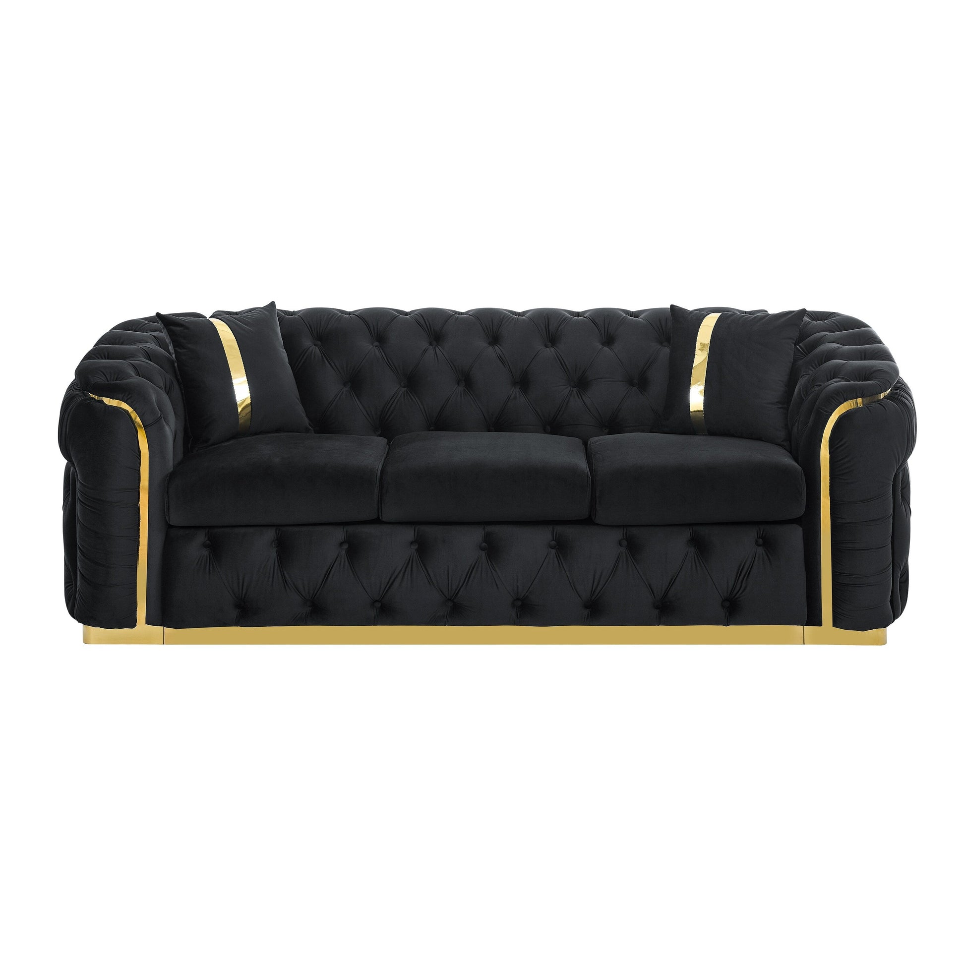 Canapé 3 places en velours 90.6 avec 2 coussins, coussins haute densité, accents dorés et oreillers