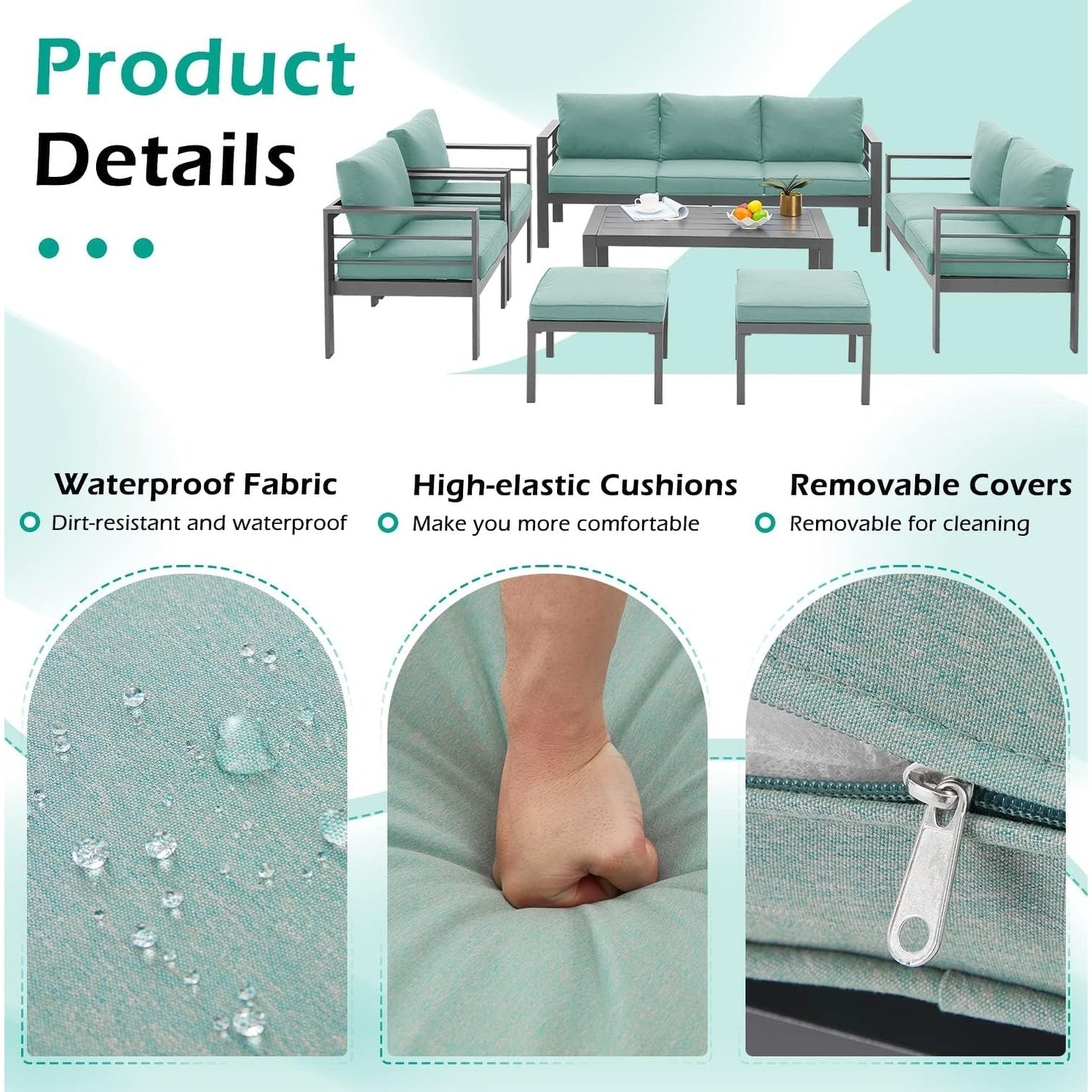 Profitez du plein air avec l'ensemble de conversation d'extérieur en aluminium 7 pièces AECOJOY. Cet ensemble de patio élégant est fabriqué en aluminium durable avec des coussins épais et résistants à l'eau, et son design moderne s'intègre à n'importe quel espace extérieur. Il comprend un canapé 3 places, un canapé 2 places, 2 chaises simples, 2 ottomans et une table basse, ainsi qu'un pied de support central pour plus de stabilité et de sécurité. Tous les éléments sont faciles à assembler grâce aux outils et instructions fournis.