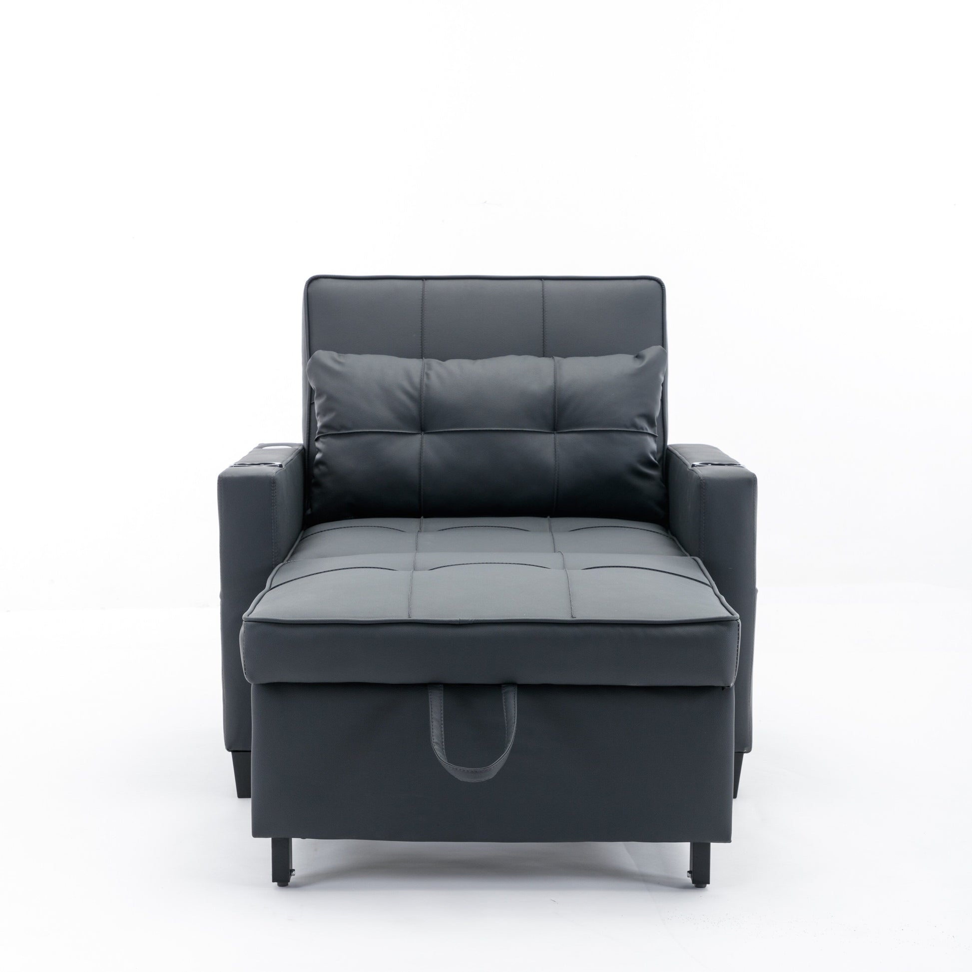 Canapé-lit convertible en simili cuir noir avec ports USB