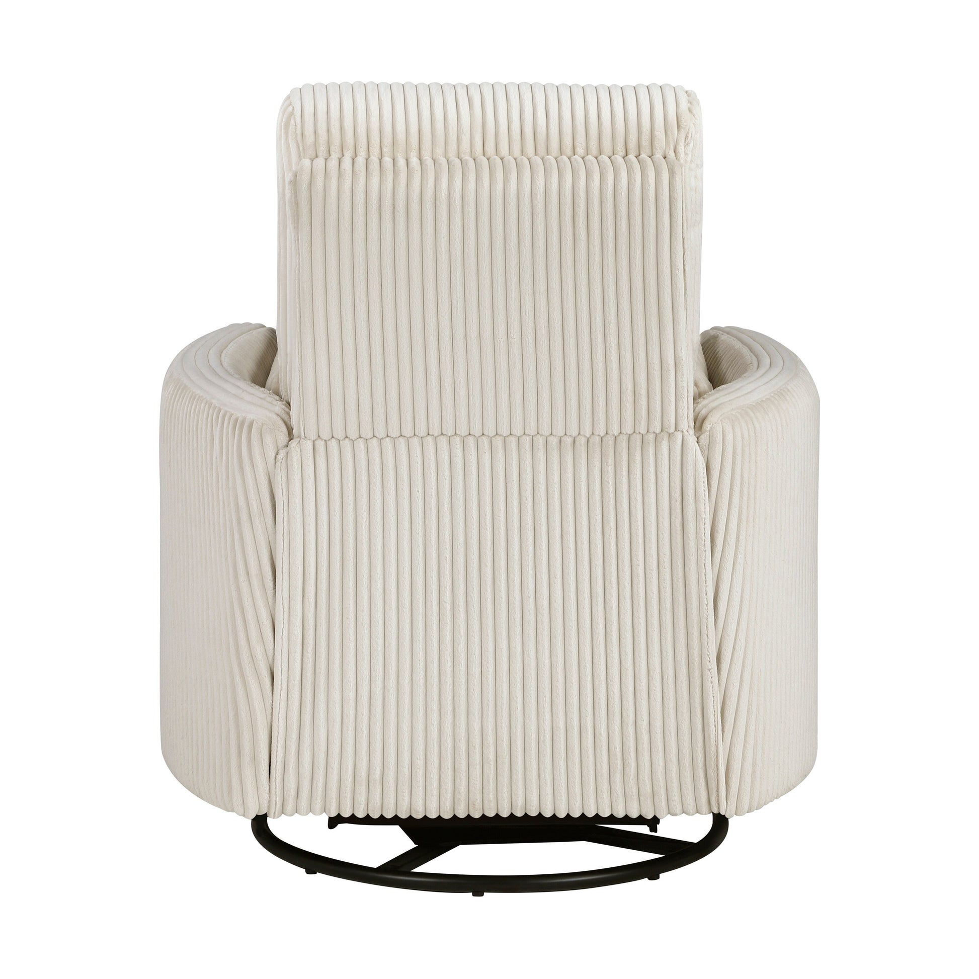 Détendez-vous avec style grâce à ce fauteuil inclinable pivotant, élégamment recouvert d'un luxueux tissu en velours côtelé. Conçu pour un confort durable, il est doté de coussins de dossier et d'assise intégrés et d'un mécanisme d'inclinaison pratique à levier pour une relaxation sans effort. Profitez de la polyvalence d'un pivotement à 360 degrés et d'un mouvement de balancement doux. Deux coussins assortis sont inclus, ajoutant confort et charme visuel à votre espace. Cette collection est disponible en beige, gris et taupe.