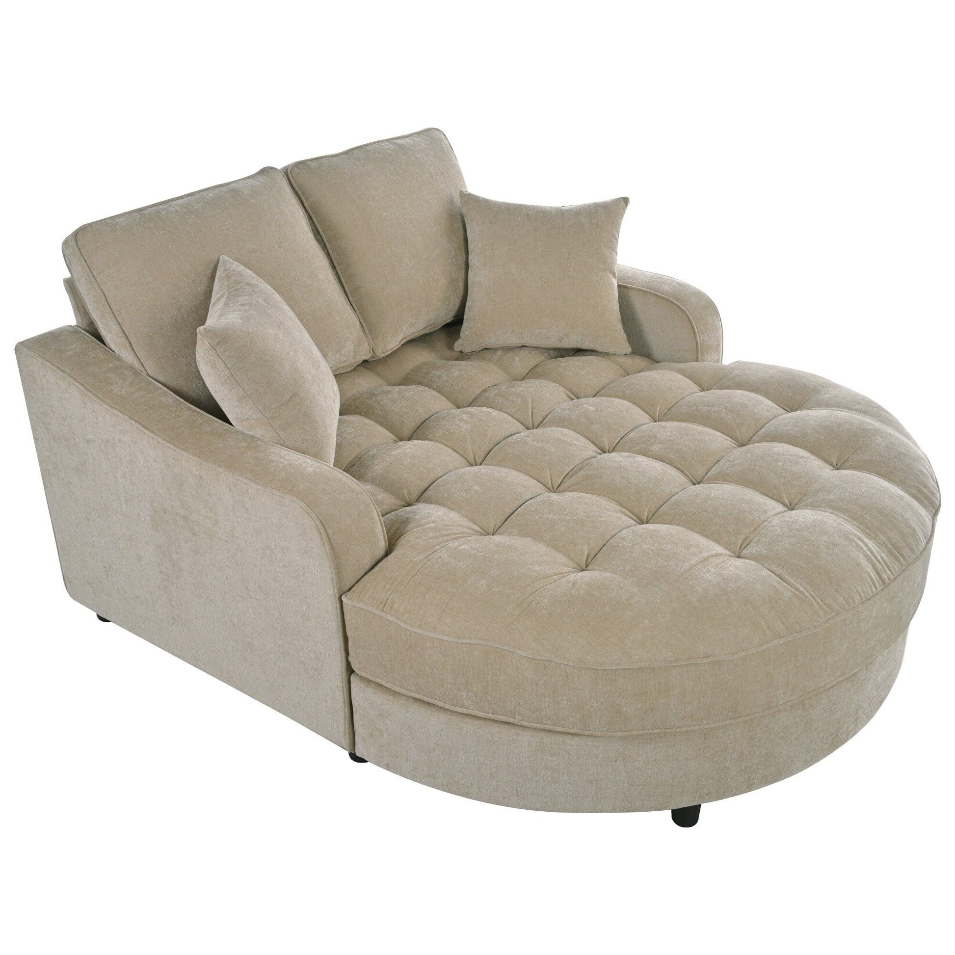 Canapé-lit chaise longue en chenille, canapé-lit recouvert de tissu avec dossier capitonné et 2 coussins amovibles pour le salon.