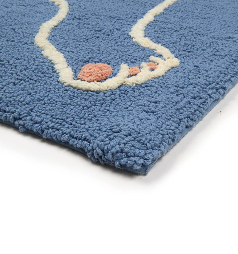 - Le fil de coton est tufté sur un support en coton, créant ainsi une surface bouclée. Pour obtenir la texture distinctive de notre tapis de bain, certaines parties du velours sont tondues pour obtenir un poil ultra-doux, tandis que d'autres zones conservent des boucles moelleuses, semblables à des cordes.