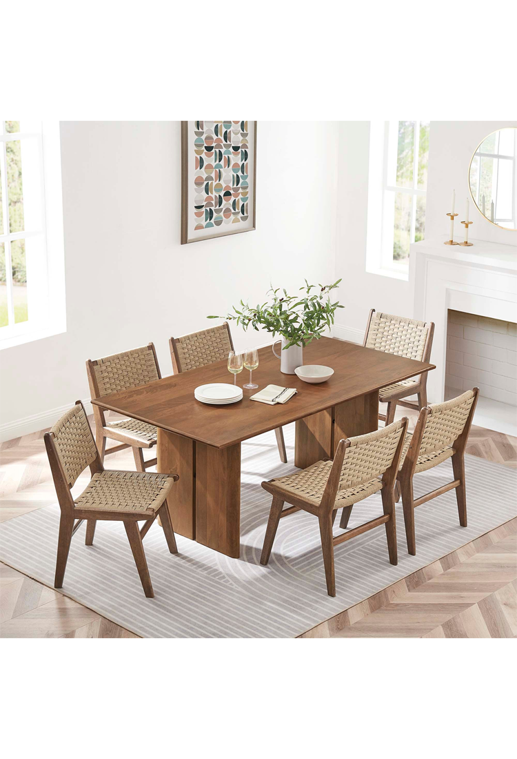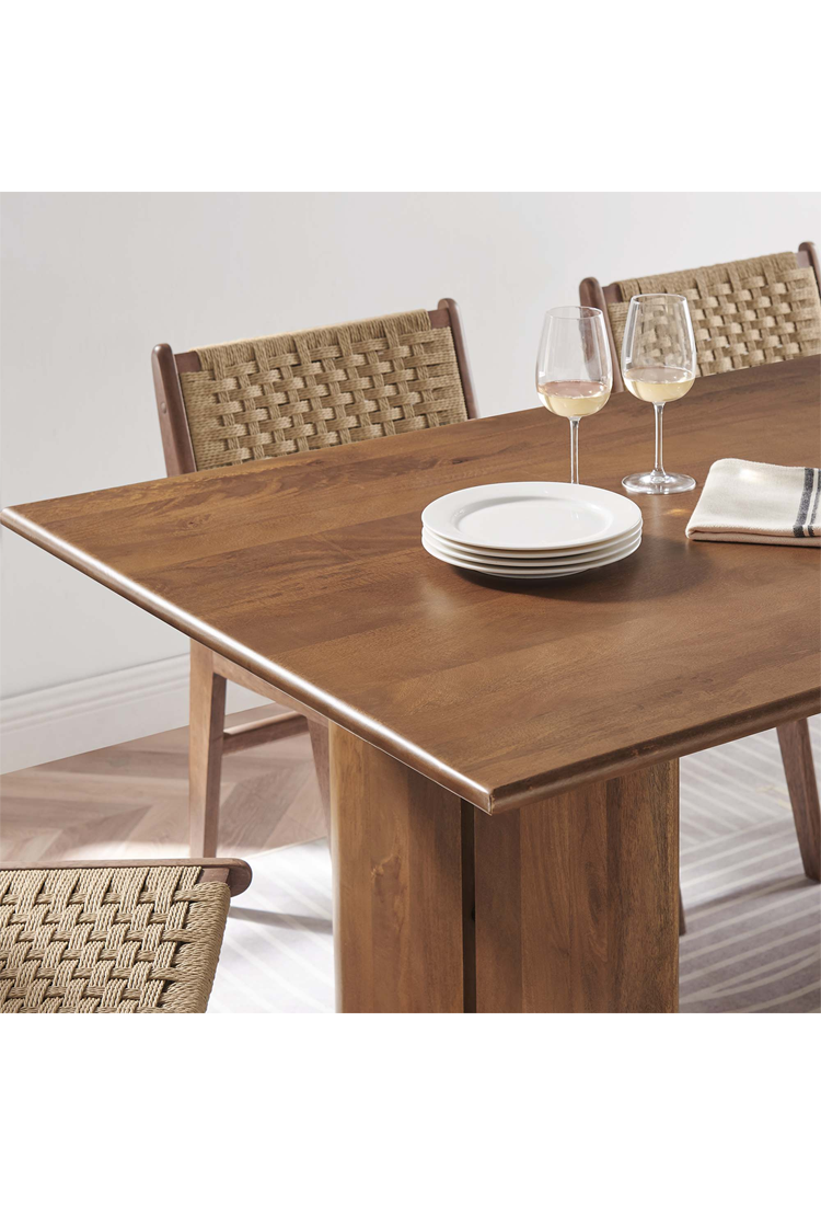 La table à manger Maiz 72' allie élégance naturelle et fonctionnalité moderne avec cette superbe pièce maîtresse en noyer. Fabriquée en bois de manguier durable, elle est parfaite pour les réunions de famille, les soirées jeux et les repas quotidiens. Ses patins non marquants préservent vos sols et ajoutent une touche de stabilité supplémentaire.