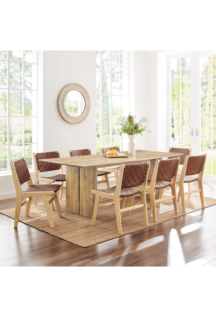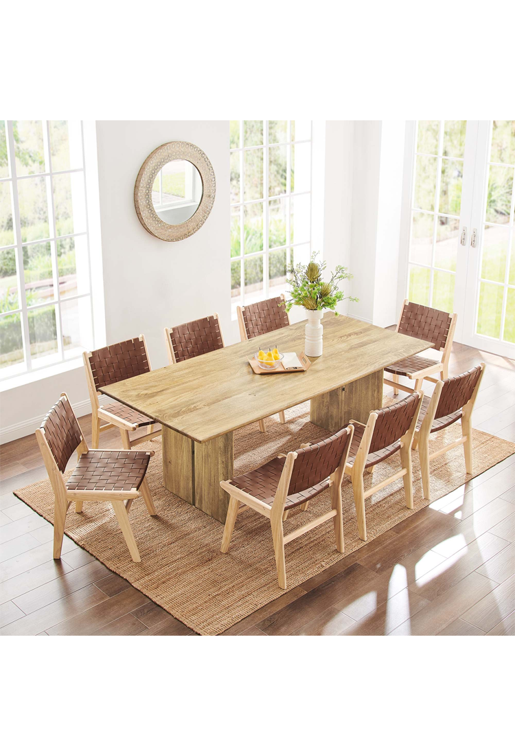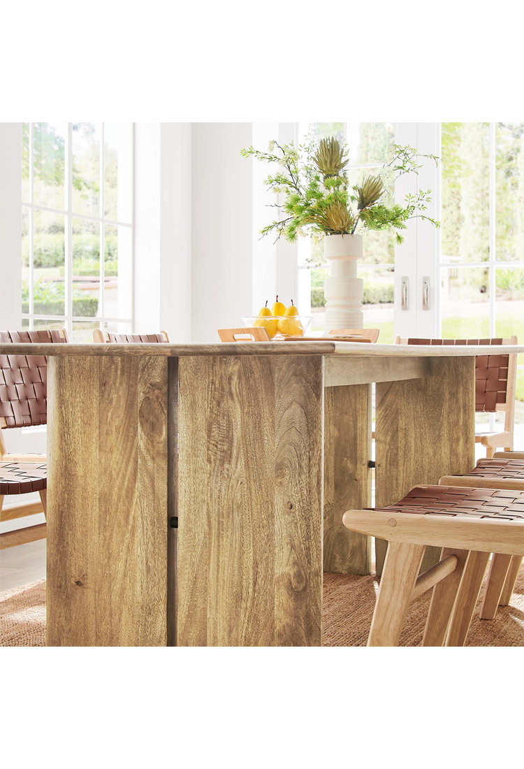 La table à manger Maiz 86' allie élégance naturelle et fonctionnalité moderne avec cette superbe pièce maîtresse en noyer. Fabriquée en bois de manguier durable, elle est parfaite pour les réunions de famille, les soirées jeux et les repas quotidiens. Ses patins non marquants préservent vos sols et ajoutent une touche de stabilité supplémentaire.