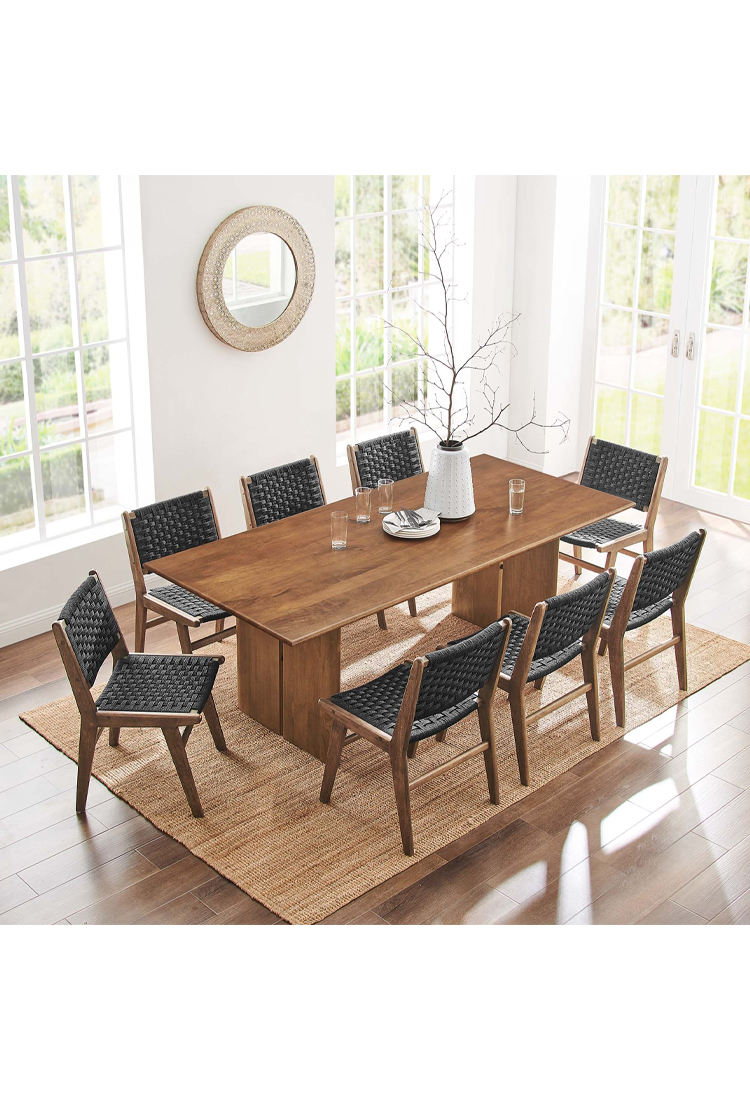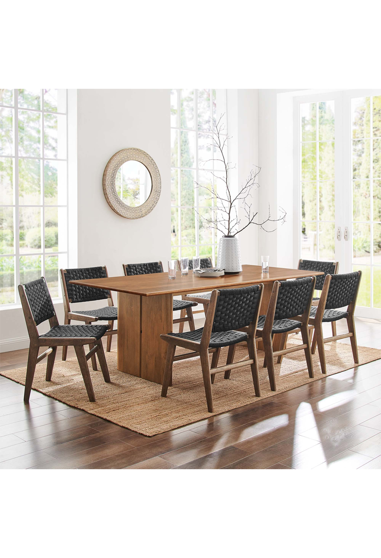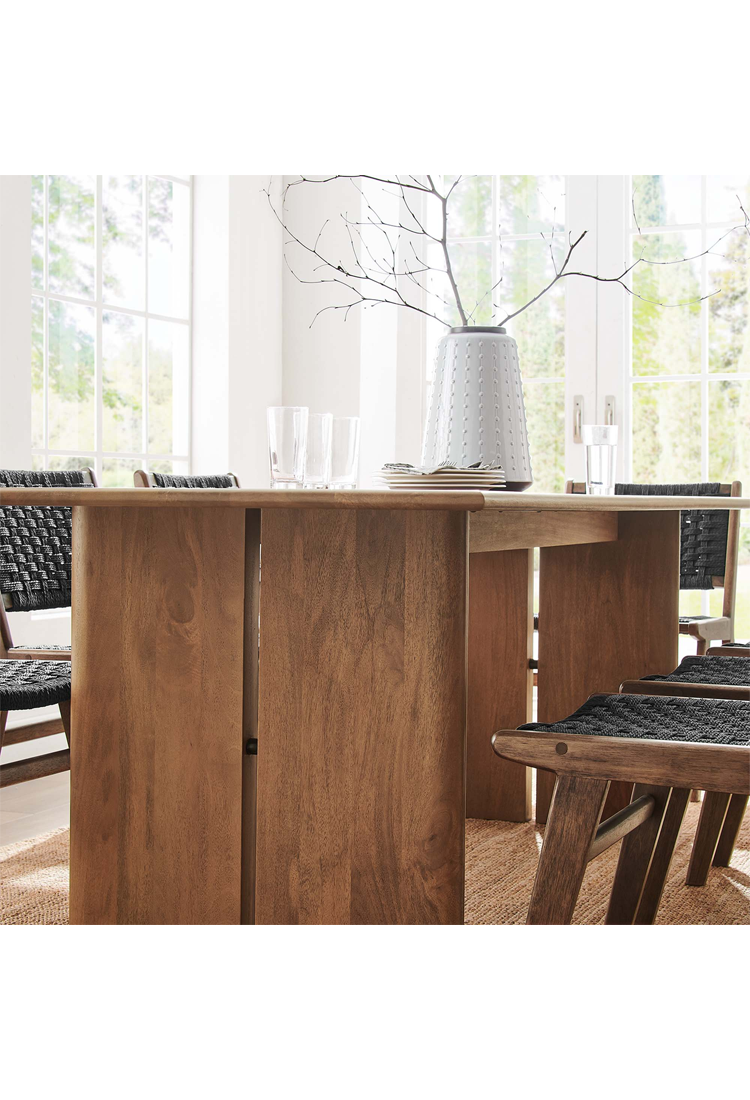 La table à manger Maiz 86' allie élégance naturelle et fonctionnalité moderne avec cette superbe pièce maîtresse en noyer. Fabriquée en bois de manguier durable, elle est parfaite pour les réunions de famille, les soirées jeux et les repas quotidiens. Ses patins non marquants préservent vos sols et ajoutent une touche de stabilité supplémentaire.