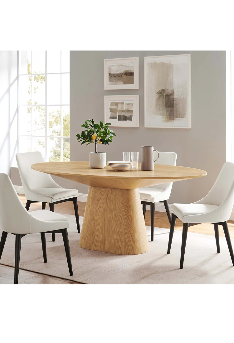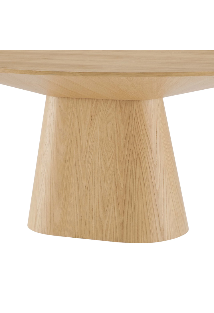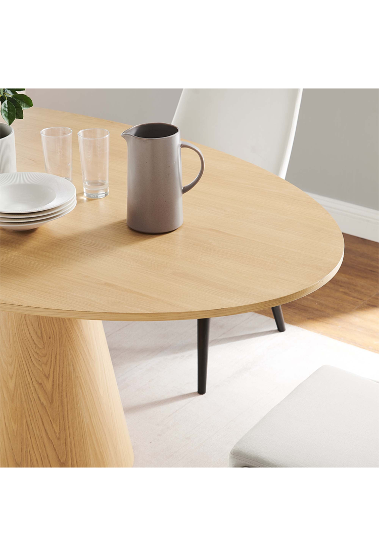 Réunissez-vous entre amis et en famille autour de la table à manger Quillon de 47 pieds pour savourer un bon repas et discuter. Avec sa construction robuste en MDF et son magnifique placage bois, cette table ronde moderne et épurée peut accueillir confortablement quatre personnes et dispose d'un piétement conique. Un tapis en feutre non marquant est inclus pour protéger le sol. Assemblage requis.