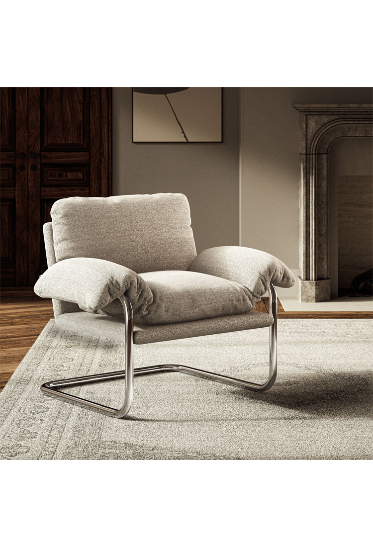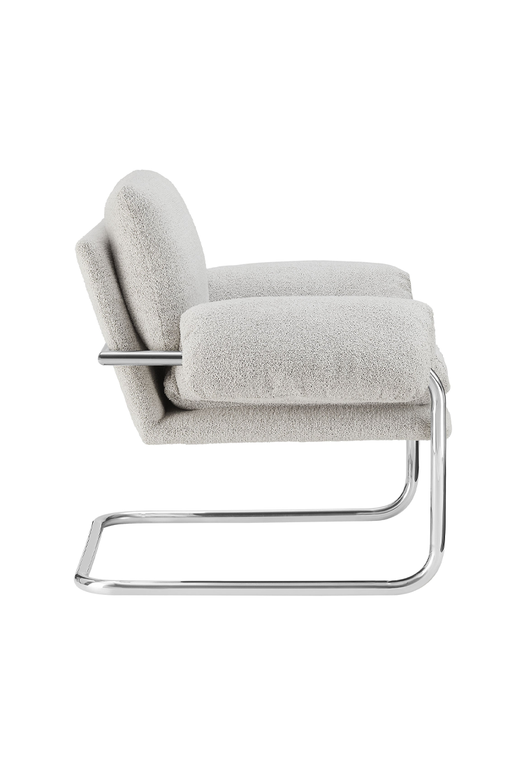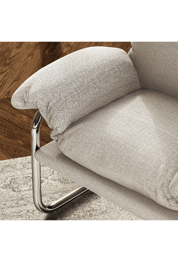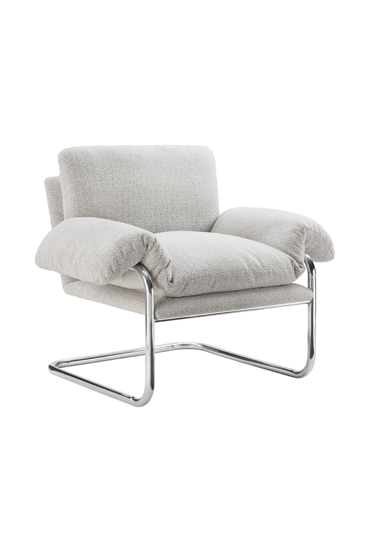 Découvrez le fauteuil d'appoint en tissu Ravessa ! Plongez dans le confort de ce fauteuil rétro moderne, alliant une structure en acier inoxydable à un revêtement en tissu bouclé moelleux. Le dossier et l'assise fixes offrent une base stable, tandis que les coussins de dossier et de corps ajoutent une touche d'élégance. Des patins non marquants protègent vos sols. Détendez-vous avec style grâce à ce fauteuil d'inspiration milieu du siècle.