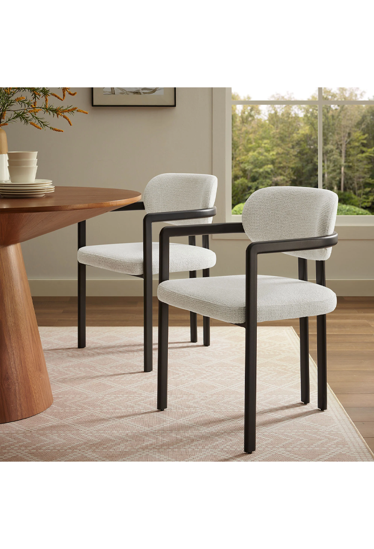 Chaise de salle à manger Marbella en tissu et métal, noir crème