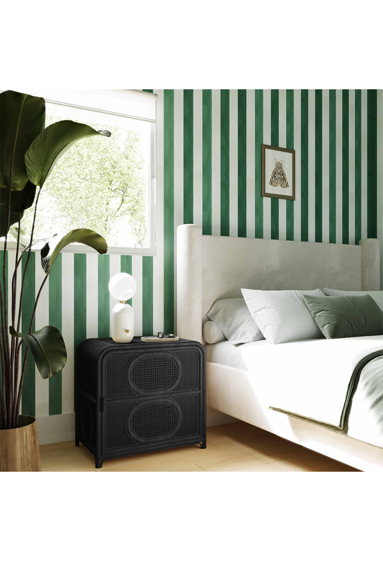 Laissez-vous séduire par le chic naturel de la table de chevet Vardis. Avec son mélange de rotin et de rotin et son design arrondi tendance, cette table de chevet à fermeture magnétique apporte une touche naturelle à votre chambre. Disponible en finition noire, elle offre également deux étagères spacieuses pour vos essentiels de nuit.