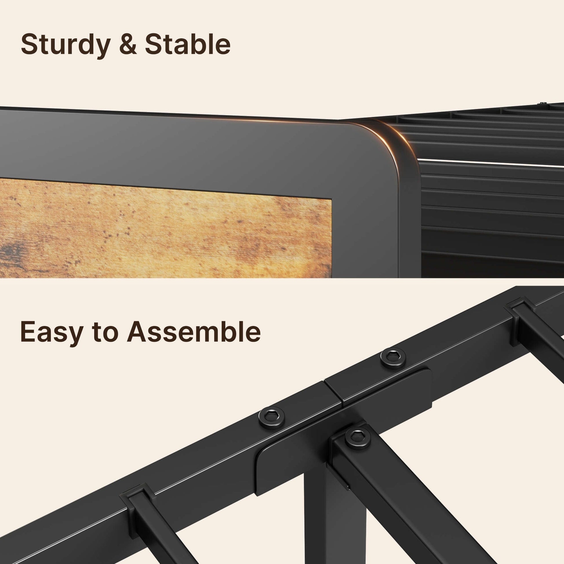Cadre de lit à plateforme en métal pour lit jumeau / double / queen / king size avec tête de lit rembourrée et rangement.