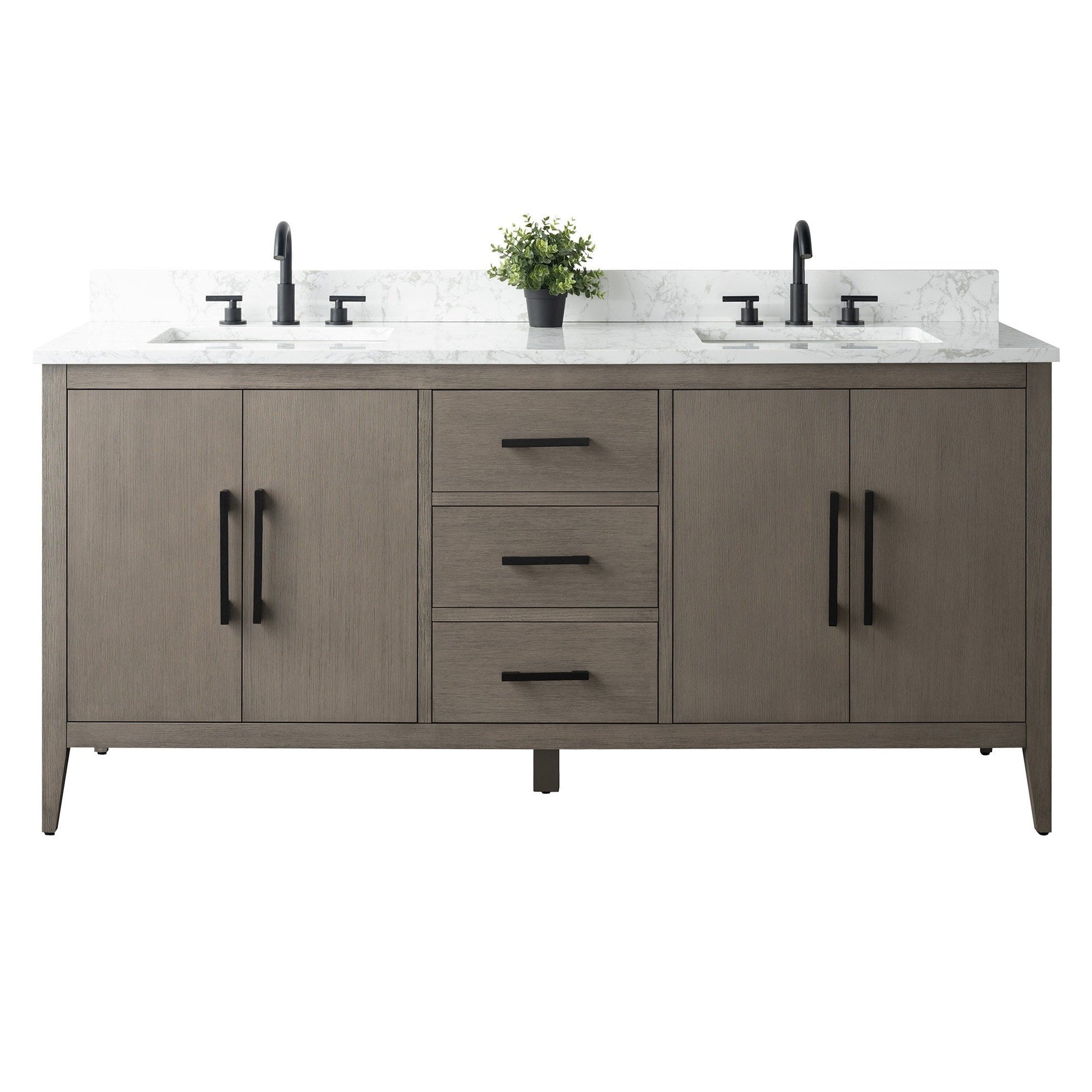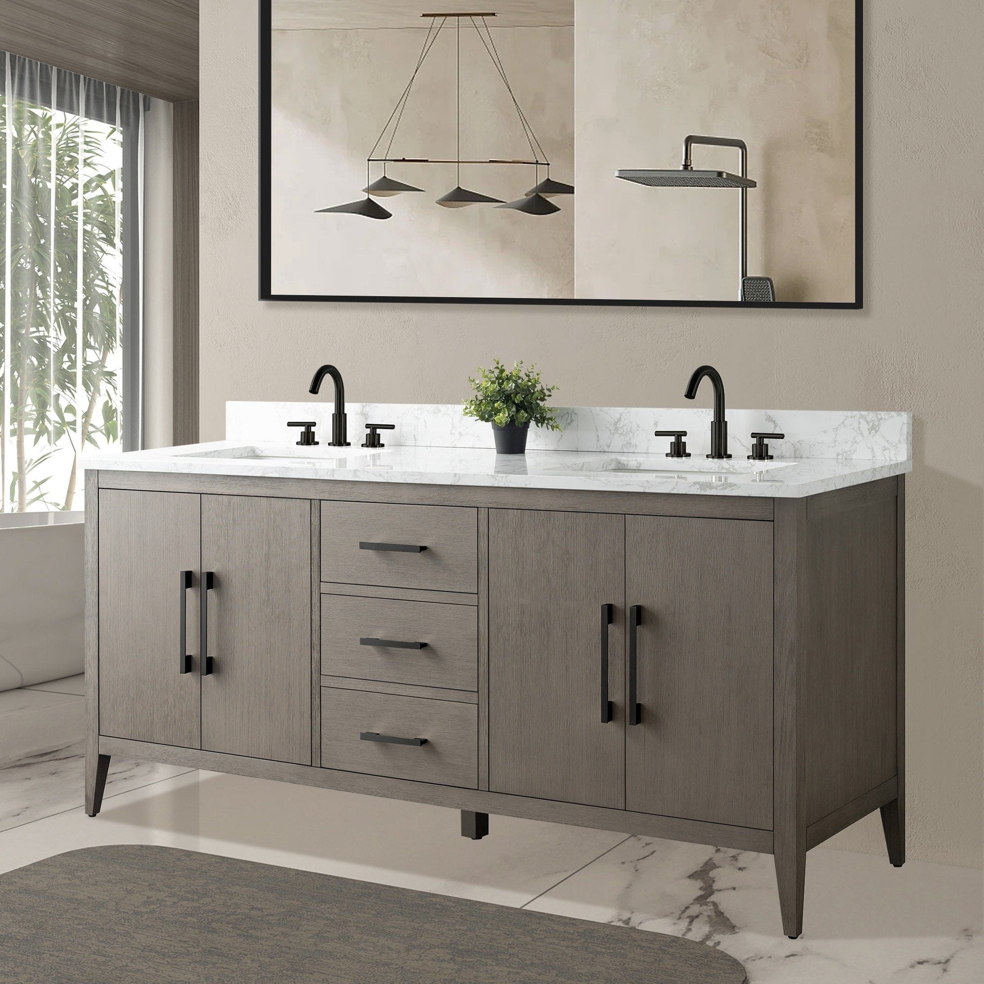 Meuble-lavabo de salle de bain Art 72 avec double lavabo et dessus en marbre synthétique.