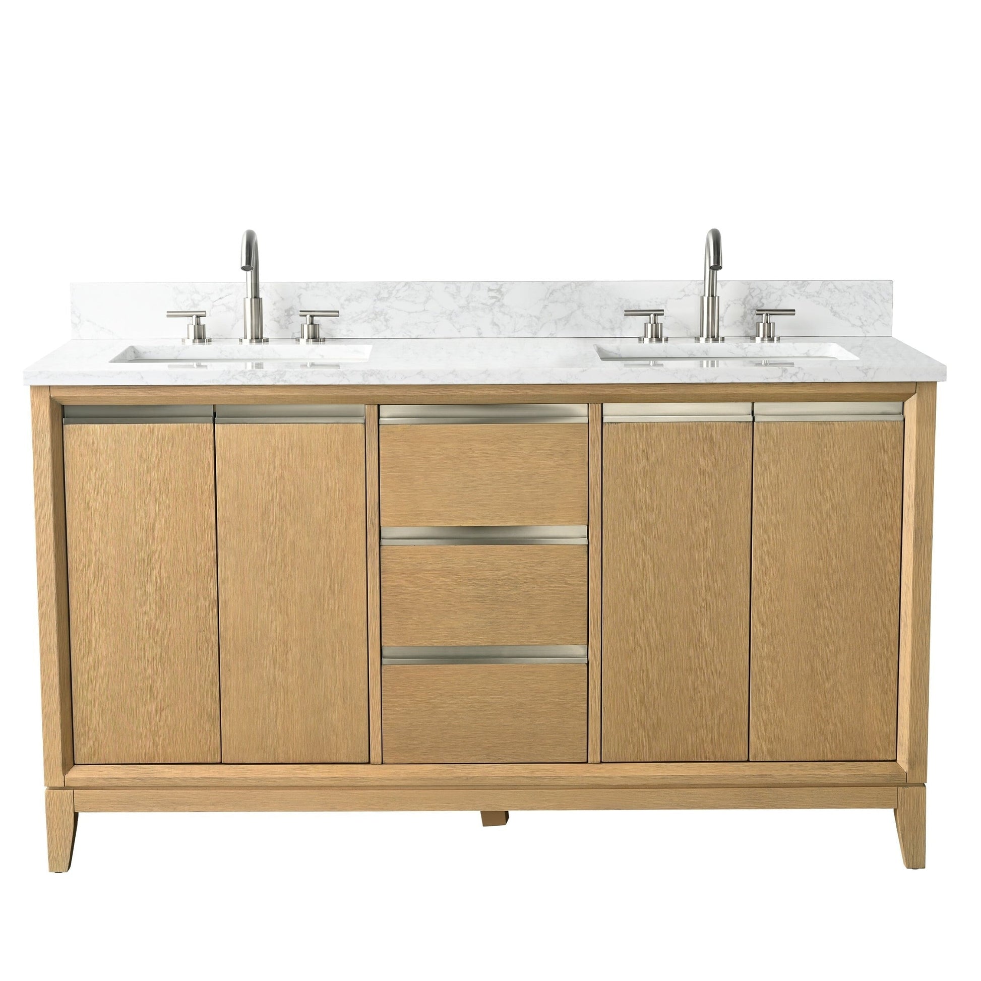 Meuble-lavabo Vanity Art avec lavabo en céramique et plan de travail en marbre composite.