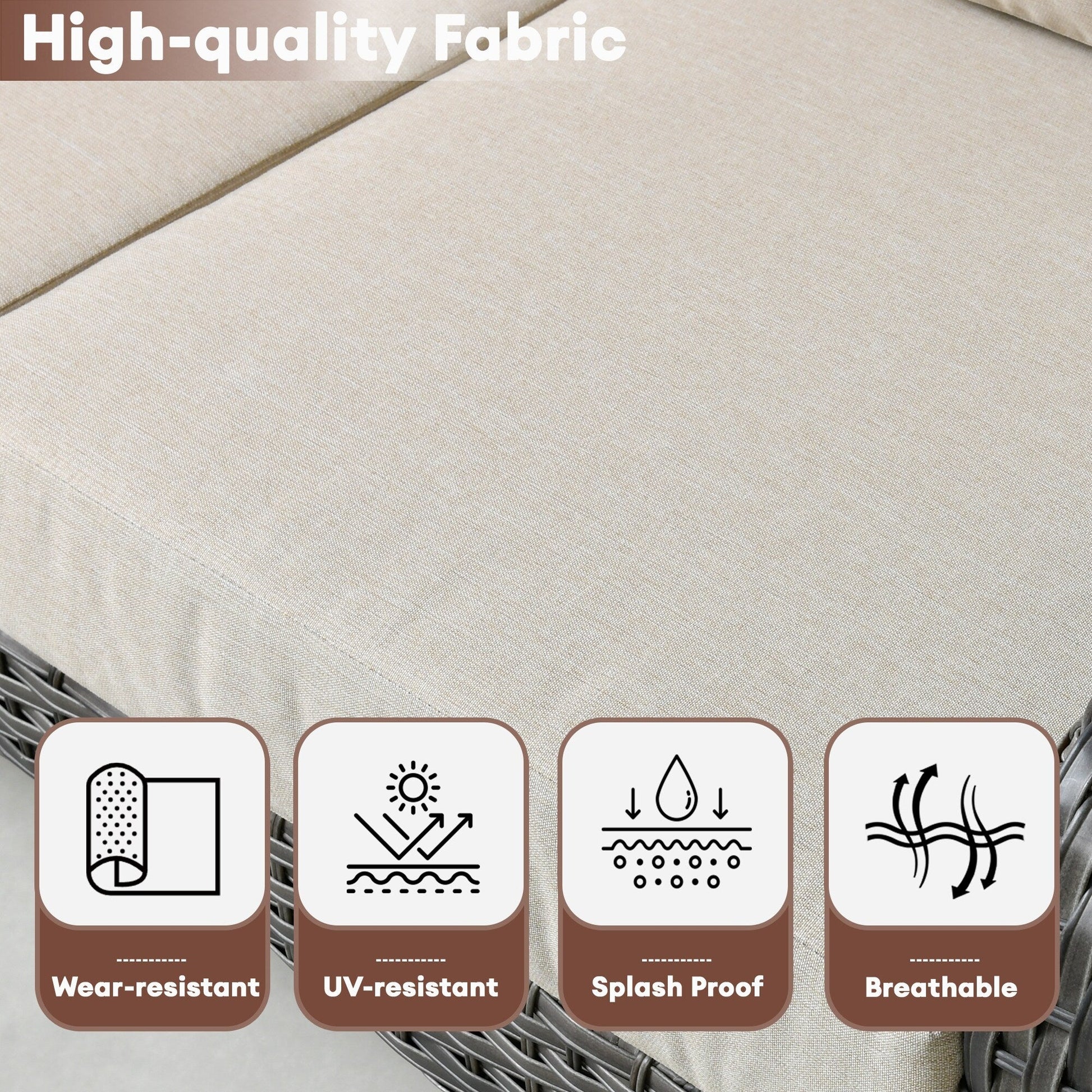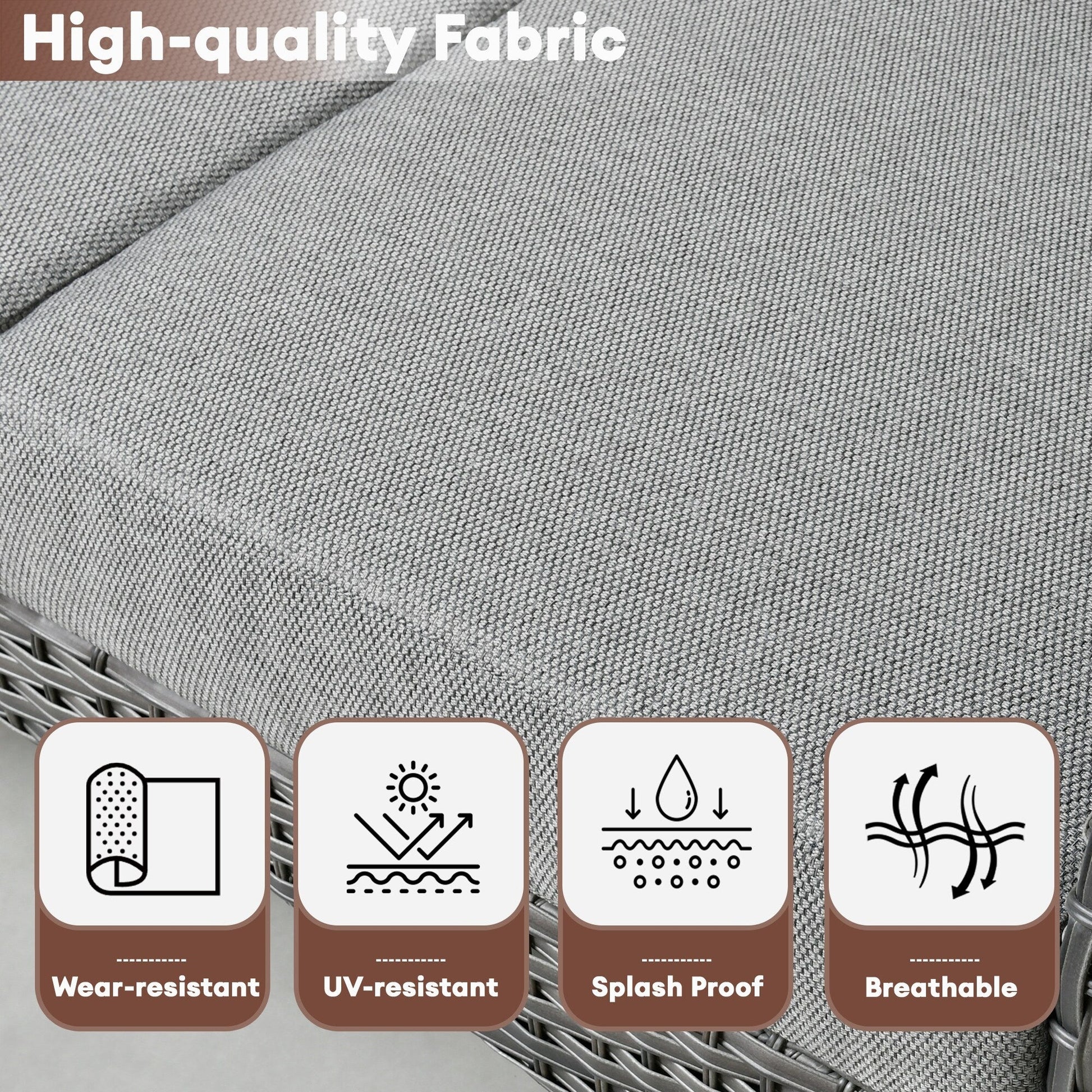 Sa structure métallique robuste à revêtement en poudre et son tressage en rotin PE résistant aux intempéries rendent cet ensemble à la fois élégant et durable. Les housses de coussins résistantes aux UV et à l'usure sont adaptées à une utilisation prolongée en extérieur. Livré avec des coussins épais et moelleux à haute résilience, il vous offre un confort et une relaxation optimaux. La table à deux niveaux offre un espace de rangement supplémentaire, parfait pour recevoir des amis ou passer des moments agréables en famille.
