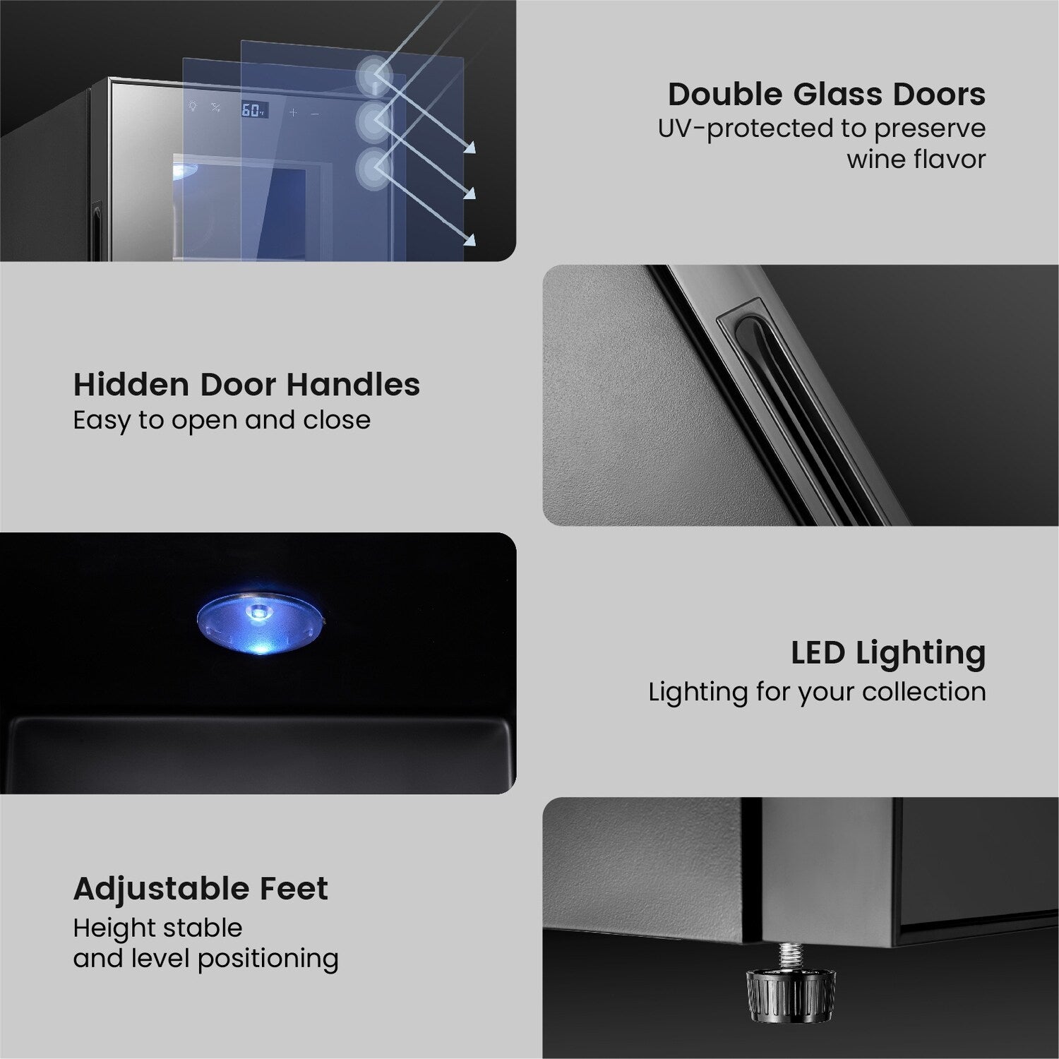 - Fonctionnement silencieux : Fonctionne avec un minimum de vibrations et de bruit, offrant un environnement paisible pour que vos vins vieillissent avec élégance.
