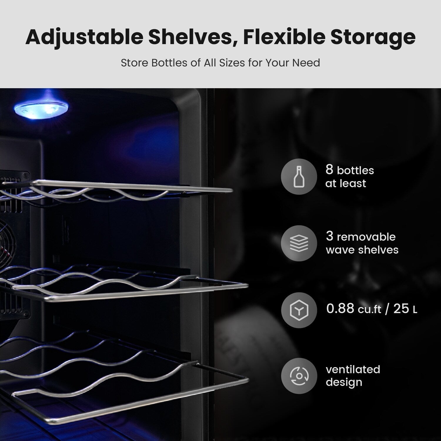 - Rangement polyvalent : Peut contenir 8 bouteilles de Bordeaux standard de 750 ml avec trois rangements à vin amovibles, ce qui permet une flexibilité pour différents types et tailles de bouteilles.