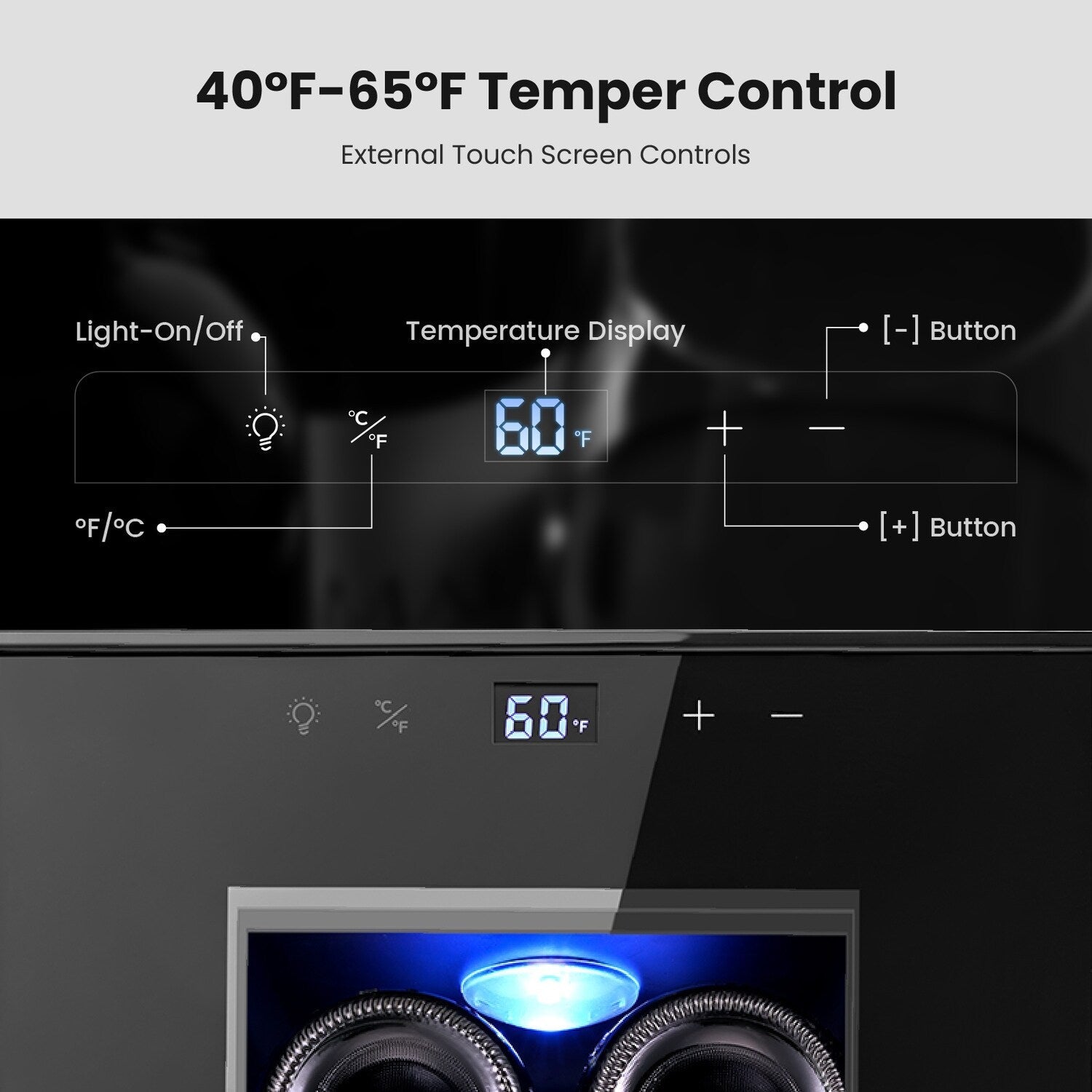 - Panneau tactile intelligent : contrôlez et surveillez les températures sans effort grâce à l'interface tactile intuitive, garantissant que vos vins sont stockés dans les conditions optimales.