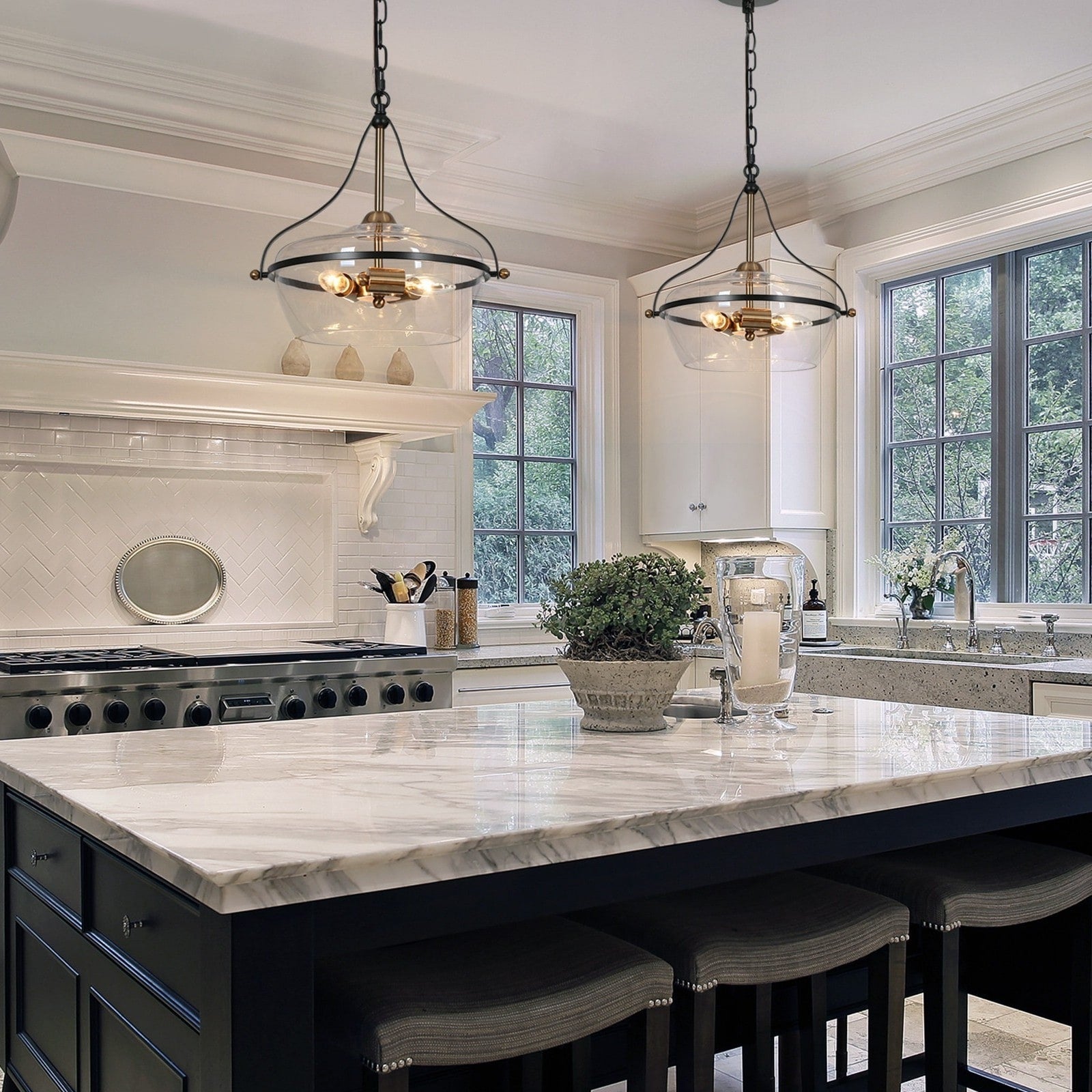 Luminaire suspendu Zelena, style ferme moderne, noir et or, à 3 lumières, pour îlot de cuisine et salle à manger.